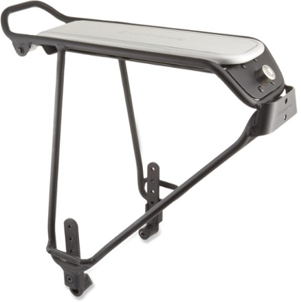 Interlock system secures blackburn barrier and local panniers to rack lockable panniers sold separately.